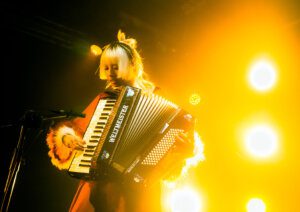 知名樂團甜約翰、I Mean Us主唱兼鍵盤手MANDARK(梁丹郡)12/24在台北Legacy舉辦人生首場個人演唱會,和粉絲們一起度過平安夜。MANDARK一登場就把全場辣翻,近期走Y2K辣妹風格的她不畏寒流,穿上超短迷你裙上陣,外搭大紅薄紗罩衫相當有聖誕氛圍。